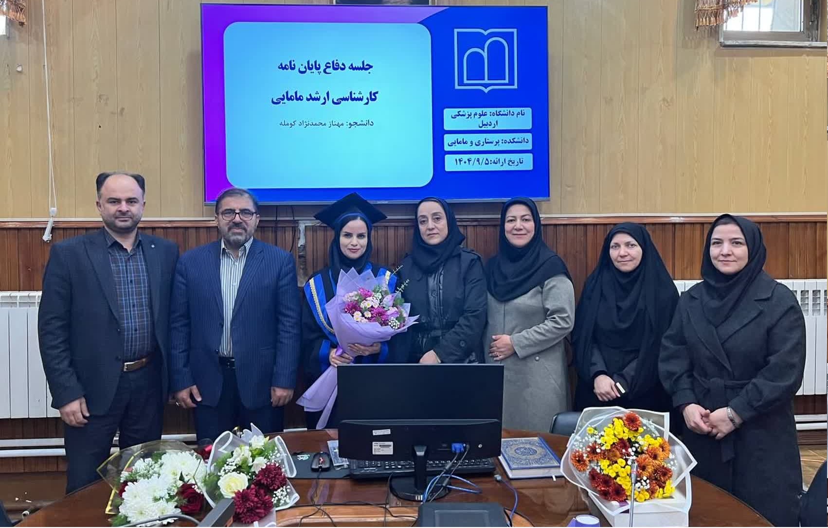 جلسه دفاع از پایاننامه خانم مهناز محمدنژاد کومله، دانشجوی مقطع کارشناسی ارشد رشته مامایی