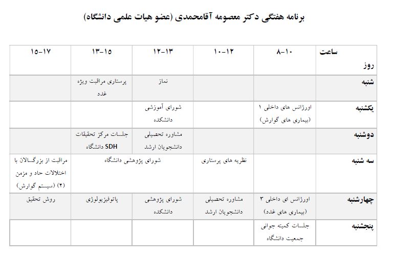 واحد های ارائه شده به خانم دکتر معصومه آقامحمدی در نیمسال تحصیلی جاری